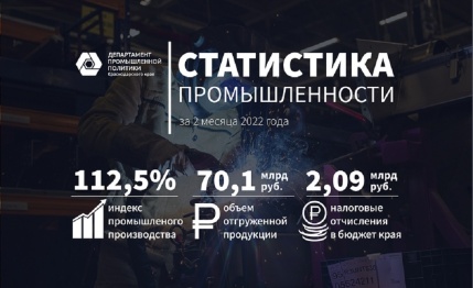 Индекс промышленного производства на Кубани составил 112,5% в феврале 2022 года